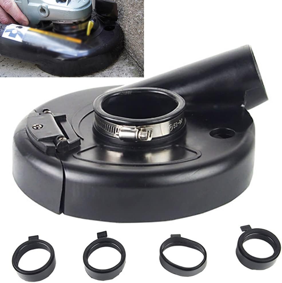 Description:★Made of high quality rubber and plastic, safe and durable, ensuring durability and light weight.★Surface grinding dust shroud fits all known brand 7 inch grinders and polishers.★Dust generated on the work surface is sucked away so you can work more easily and efficiently.★Suitable for polishing cement, stone and concrete, and also for removing surface attachments such as resin, rubber, paint, etc.★ The new angle grinder dust cover is easy to install and does not require tools.Product specifications:Material: rubber + plasticColor: black, as shownWheel diameter: about. 21.5 cm/ 8.5"Wheel inner diameter: approx. 18 cm/ 7"Connector diameter: approx. 6.5 cm/ 2.6"Hole diameter: approx. 8 cm/ 3.1"Positioning ring diameter: about 7 cm/ 2.8"Package Included:1 x dust cover4 x positioning ring
